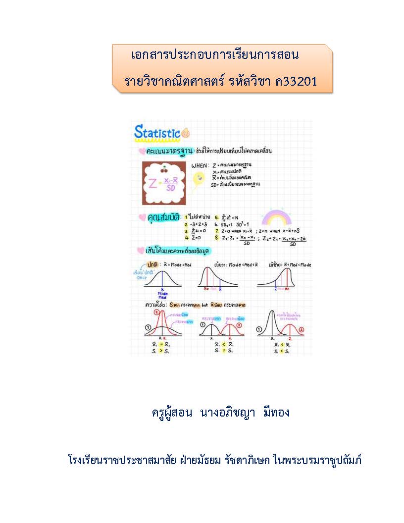 เอกสารประกอบการเรียนการสอน รายวิชาคณิตศาสตร์ รหัสวิชา ค33201 เรื่องการแจกแจง