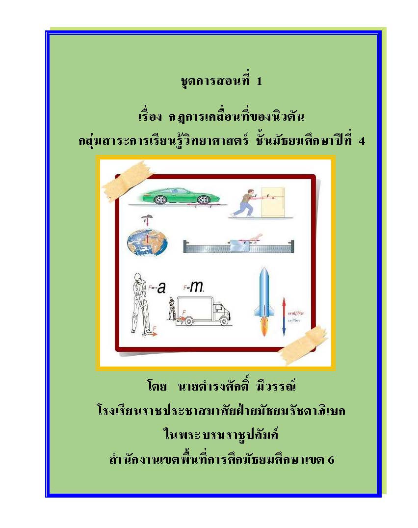 ชื่อผลงาน : ชุดการสอนที่ 1 เรื่อง กฎการเคลื่อนที่ของนิวตัน กลุ่มสาระเรียนรู้วิทยาศาสตร์ ชั้นมัธยมศึกษาปีที่ 4