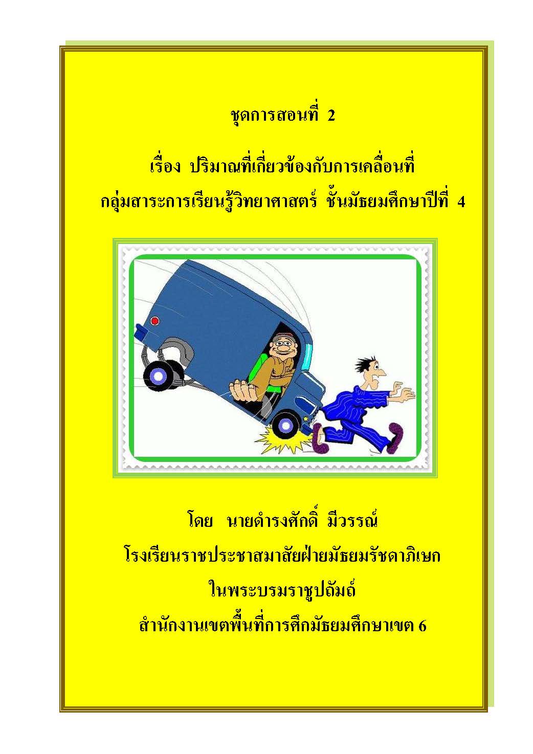 ชื่อผลงาน : ชุดการสอนที่ 2 เรื่อง ปริมาณที่เกี่ยวข้องกับการเคลื่อนที่ กลุ่มสาระการเรียนรู้วิทยาศาตร์ ชั้นมัธยมศึกษาปีที่ 4